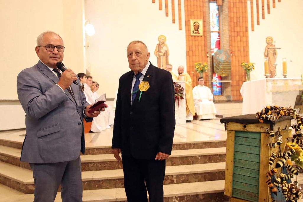 Na zakończenie mszy dziękczynnej Wicewojewoda Łódzki, Pan Marek Mazur wręczył w imieniu Prezydenta RP Złoty Krzyż Zasługi Panu Zbigniewowi Sokołowskiemu – wybitnemu pszczelarzowi z wieloletnim stażem, który pomimo wieku ponad 80 lat cieszy się wyjątkowym zdrowiem i nadal aktywnie działa na rzecz środowiska pszczelarskiego.