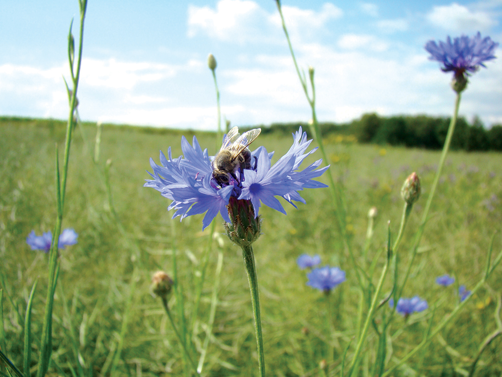 Dostarcza pszczołom nektaru i dużej ilości pyłku, z którego pszczoły formują białawe obnóża. Nektar jest bardzo łatwo dostępny dla pszczół i całkowicie wypełnia rurkę korony. Miód z bławatka jest jednym z lepszych naszych miodów, charakteryzuje się przyjemnym, nieco migdałowym aromatem i lekką goryczką.
