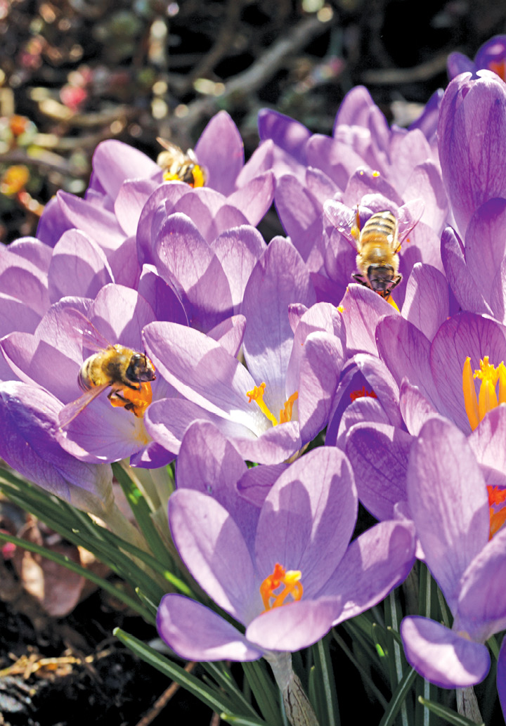 Kwiaty szafranu stanowią świetne źródło wczesnowiosennego pyłku, dostarczanego w znacznych ilościach, oraz produkują nektar. O dużym zainteresowaniu pszczół kwiatami krokusa świadczy fakt, iż na 1 m² kwitnącej rabaty może pracować jednocześnie 24 robotnic. Jeden kwiat wywarza 2-15 mg pyłku, z którego zbieraczki tworzą duże (średnio 7-8 mg), żółte do pomarańczowych obnóża. W formowaniu obnóży pomaga kit pyłkowy, którego liczne krople występują na powierzchni ziaren pyłku. Do wytworzenia obnóży robotnice potrzebują średnio 3 minuty. Pyłek krokusa zbierany jest przez cały dzień z największym nasileniem w godzinach południowych i popołudniowych (11:00-15:00). Pod względem wartości odżywczej jest on zaliczany do najlepszych. Nektar wydzielany jest przez tkankę usytuowaną wewnątrz zalążni w dolnej części kwiatu, skąd podpływa wysoko w wąskiej rurce okwiatu, aż do jej szczytowej części. Nektar zawiera glukozę, fruktozę i sacharozę w zbliżonych proporcjach.