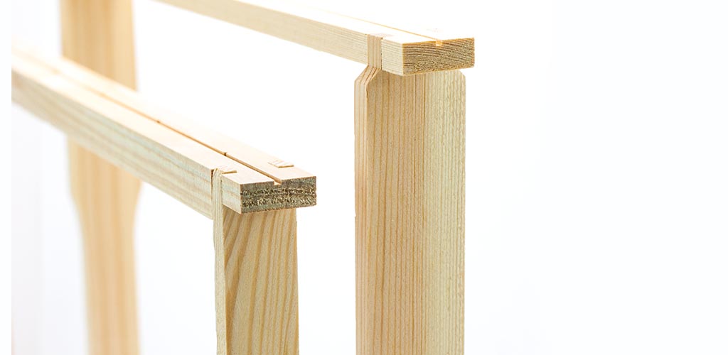 b) do bocznych listewek ramek przybija odstępniki, czyli małe elementy dystansujące wykonane najczęściej z plastiku,