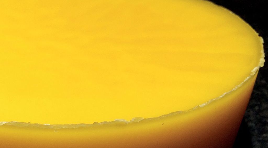 Warto zaznaczyć, że badania organoleptyczne wosku pszczelego wykonuje się na świeżo przełamanej bryle. Oględziny należy wykonać przy świetle padającym na miejsce przełamania pod kątem 45°, a także na drodze określania zapachu oraz ugniatania i rozciągania wałeczkowatej próbki tego surowca w palcach [3]. Obie klasy wosku pszczelego charakteryzują ponadto liczby: kwasowa – wyrażająca ilość wodorotlenku potasu w mg potrzebną do zobojętnienia wolnych kwasów tłuszczowych zawartych w 1 g wosku, liczba zmydlania – wyrażająca ilość KOH w mg potrzebna do hydrolizy estrów i zobojętnienia kwasów zawartych w 1 g wosku oraz liczba jodowa – informująca o zawartości związków nienasyconych w 100 g wosku [6]. O tym, dlaczego wymagania jakościowe dla wosku pszczelego zawarte w PN nie są wystarczające, zwłaszcza w kontekście zafałszowań tego produktu pisała wielokrotnie Ewa Waś w „Pasiece” m.in. w numerze 2/2023 w artykule pt. „Czy istnieją proste metody wykrywania zafałszowań wosku pszczelego” [przyp. red.].