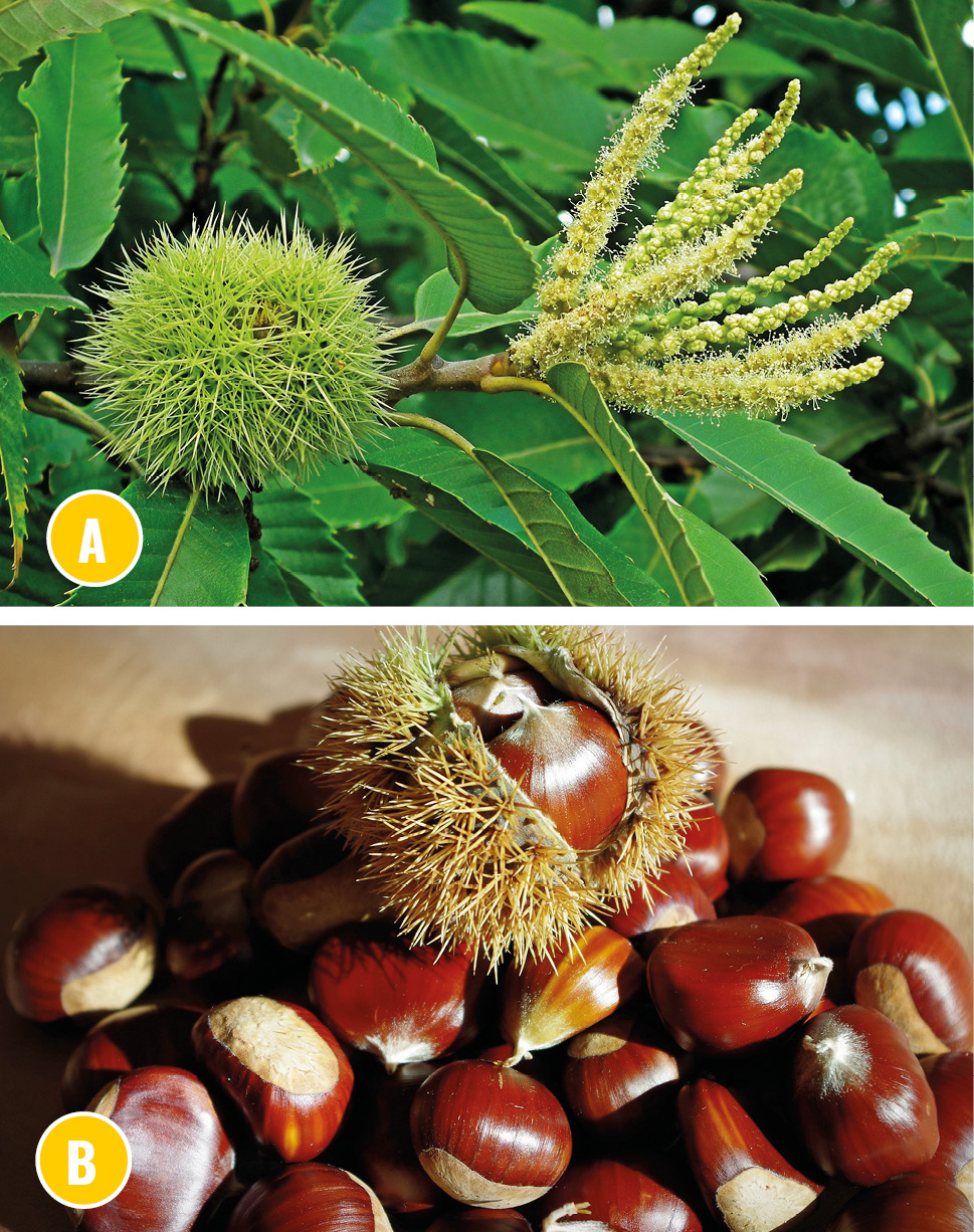 Kasztan jadalny (Castanea sativa Mill.) to okazałe drzewo z rodziny bukowatych (Fagaceae), pochodzi z południowo-wschodniej Europy. Od starożytności szeroko uprawiany w rejonie śródziemnomorskim dla jadalnych orzechów (pieczone kasztany). Kasztany są bardzo smaczne, mają szerokie zastosowane w domowej kuchni. Świeże można spożywać na surowo, wysuszone najczęściej się piecze i sprzedaje jako przekąskę serwowaną na mieście. Sporządza się z nich również kompoty. Na Węgrzech przetarta masa kasztanowa, świeża albo mrożona, używana jest do przyrządzania purée z kasztanów (węg. gesztenyepüré) i innych wyrobów cukierniczych. W Niemczech jedzona jest chętnie zupa kasztanowa.