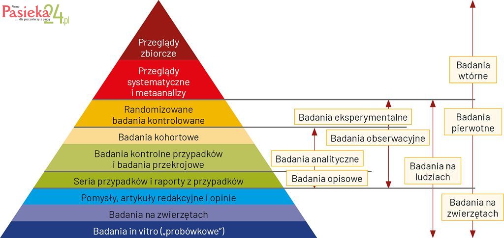 W systemie medycyny opartej na faktach naukowych mamy do czynienia z tzw. drabiną dowodzenia. Złotym standardem w medycynie uznaje się tzw. badania kliniczne randomizowane (z losowo dobranymi pacjentami), z grupą kontrolną (która dostaje preparat niedziałający tzw. placebo) z podwójną ślepą próbą (zarówno badacze, jak i pacjenci nie wiedzą, kto należy do jakiej grupy). Zjawiskiem, które bada się w pierwszym etapie badań klinicznych, są skutki uboczne negatywne. Bowiem długotrwałe stosowanie preparatów powinno mieć więcej plusów niż minusów. Natomiast znane pozytywne działanie w określonych dawkach musi być wyraźnie statystycznie wyższe niż efekt placebo. Niestety nie jest łatwo zebrać takie dowody i wymaga to ogromnych nakładów finansowych. Wydaje się, że preparaty z definicji bardzo zróżnicowane o niejednorodnym składzie, takie jak miody naturalne, mają jeszcze większą trudność, aby przejść cały ten proces, którego końcowym efektem będzie dostępny masowo produkowany, standaryzowany preparat.