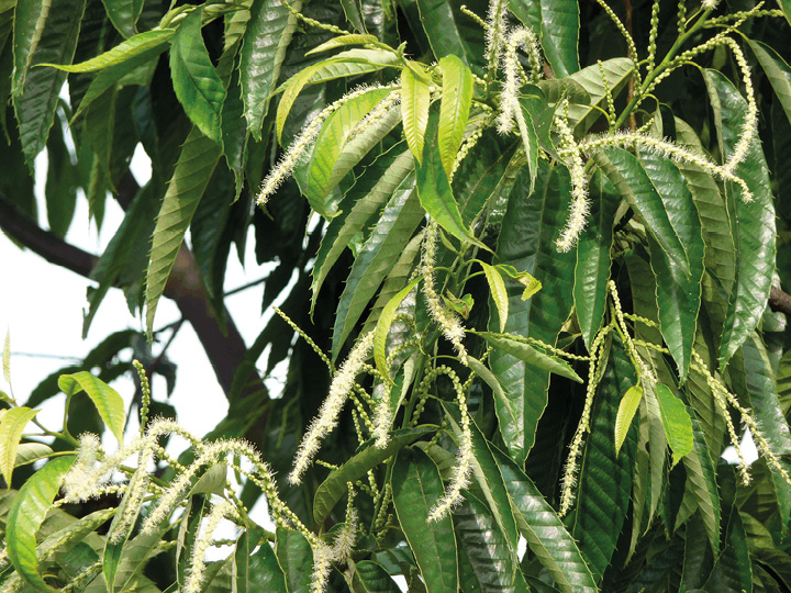 Kasztan jadalny Castanea sativa w krajach basenu Morza Śródziemnego dostarcza przede wszystkim miodów nektarowych, ale podobnie jak lipy bywa istotnym źródłem spadzi liściastej [Crane, Walker 1984, 1985]. Spadziowe miody z kasztana stanowią ułamek (mniej niż 1%) miodów spadziowych produkowanych w Grecji, Turcji czy Serbii, jednak są bardzo poszukiwane przez smakoszy. Do XIX w. okazy tego gatunku sadzone na naszych ziemiach cierpiały od mrozów, a ich owoce dojrzewały tylko sporadycznie [Bieniek i in. 2005, Kawecki i in. 2001, Fortuna-Antoszkiewicz i in. 2010]. Dziś C. sativa coraz częściej odnawia się z samosiewów nie tylko na zachodzie, lecz nawet w Polsce centralnej np.: Ogrodzie Botanicznym PAN w Powsinie.