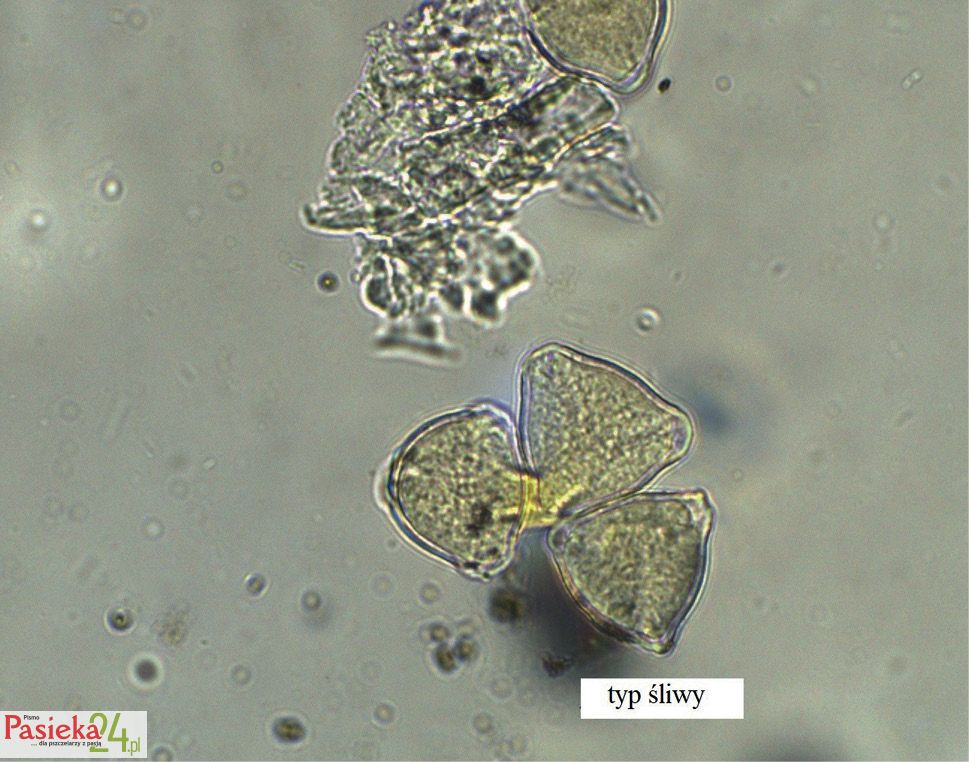 W omawianych miodach notowano 15 taksonów ziaren pyłku, w tym 13 reprezentowanych przez rośliny nektarodajne i 2 przez nienektarujące. Spośród roślin nektarodajnych, poza pyłkiem typu śliwy, zidentyfikowano również: wierzbę, kapustowate, typ maliny, typ krwawnika, typ trybuli, typ jabłoni, klon, typ astra, koniczynę białą, kasztanowiec, chaber bławatek, typ ostrożnia, typ mniszka i lipę. Wśród roślin nienektarodajnych notowano pyłek leszczyny i trawy.