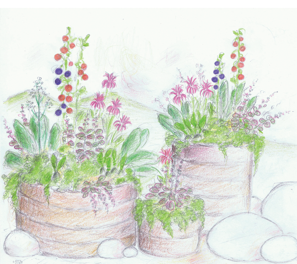 Kompozycja warzywna w donicy nr 2. Rys. Maria Janicka