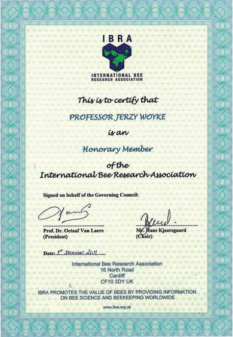 Członek honorowy Intern. Bee Res. Assoc. (IBRA) 2011