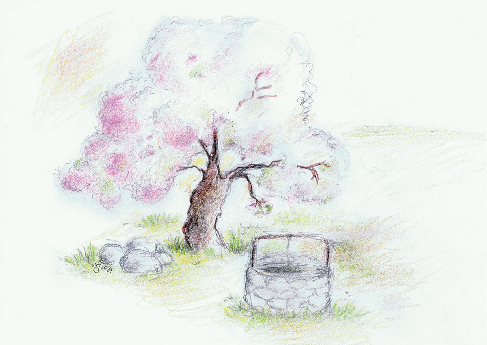 Ryc. 1. Stara jabłoń – kompozycja ze studnią. Rys. M. Janicka