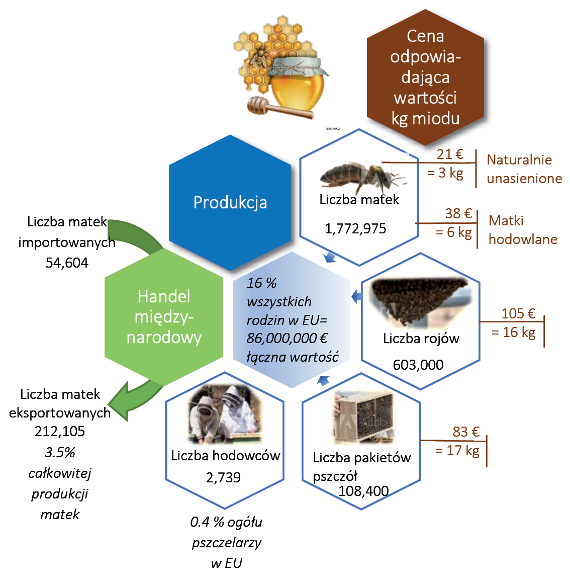 Średnie koszty produkcji matek pszczelich w pasiekach objętych badaniami wynoszą 22,58 euro za jedną matkę, ale są one bardzo zróżnicowane (od 8,22 euro w Polsce do 37,30 euro we Francji). Największy udział w tych kwotach stanowią koszty pracy, które znacznie różnią się w poszczególnych krajach. Średnia cena jednej matki pszczelej wynosząca 23,32 euro bardzo często nie pokrywa rzeczywistych kosztów produkcji i w żaden sposób nie rekompensuje wysiłków związanych z prowadzeniem starannie zaplanowanej i długotrwałej selekcji, w tym testowania, szacowania wartości hodowlanej i utrzymywaniem stacji unasieniania matek (trutowiska, sztuczne unasienianie).