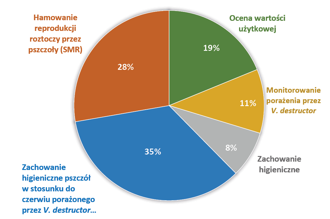 Rys. 8. Udział kosztów poszczególnych testów w całkowitym koszcie selekcji w kierunku odporności na V. destructor.