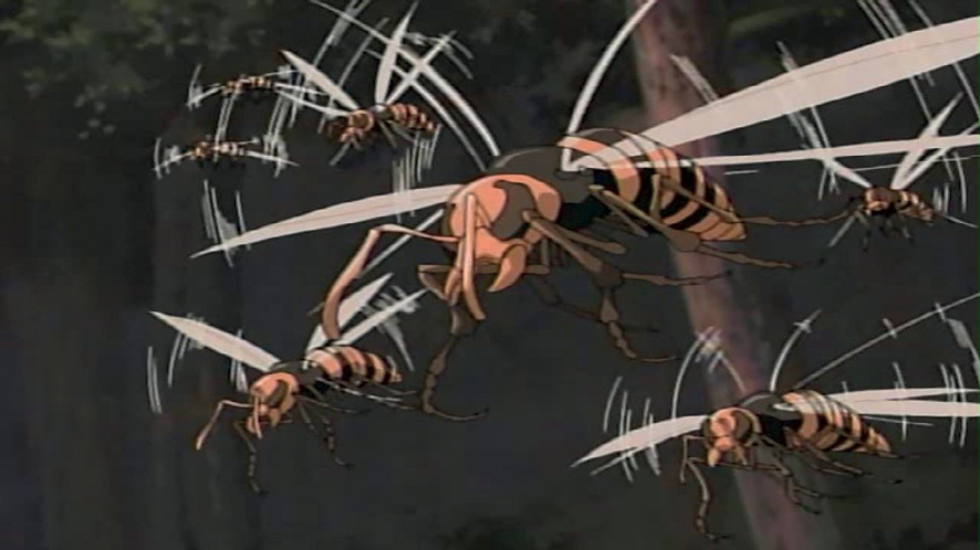 Podobne, choć zdaje się, że bardziej przerażające, stworzenia zainspirowane pszczołami zostały zawarte w mandze „Naruto”, której twórcą był Masashi Kishimoto. Na jej podstawie powstało kilka filmów animowanych i dwie osobne serie serialu anime o tym samym tytule. Naruto Uzumaki, podobnie jak Ash Ketchum, jest nastolatkiem, który chce zostać mistrzem. Jednak świat Naruto jest światem ninja, dlatego nieustannie poszukuje on uznania, sądząc, że uzyska je jedynie poprzez rozwój swoich umiejętności ninja. Podobnie jak w serii Pokémon stworzenia, których pierwowzorem były pszczoły, stanowią jedynie wątek poboczny głównego nurtu zdarzeń, jednakże cechy im dodane pozwalają na ocenienie różnic kulturowych, jakie występują między wschodnią wizją tychże owadów a ich zachodnimi odpowiednikami.