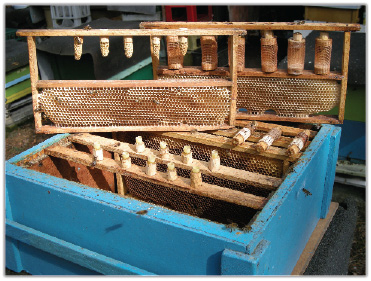 fot. © Michał ZawilakDo ujemnych stron tej masowej hodowli zalicza się to, że tak wysoki i niezaspokojony popyt na te matki przyniósł pogorszenie ich jakości. Są to matki sztucznie unasienniane bez sprawdzonego czerwienia, niechętnie przyjmowane przez rodziny odmienne rasowo, a co także się zdarza, przeciskające się przez kratę odgrodową celem dounasiennienia się lub są wymieniane w ciągu sezonu. Poprawę tej sytuacji może przynieść prosta metoda wychowu matek we własnym zakresie w rodzinach, w obecności czerwiącej matki. Podstawowym warunkiem tego wychowu jest posiadanie matki reprodukcyjnej o sprawdzonej wartości hodowlanej.