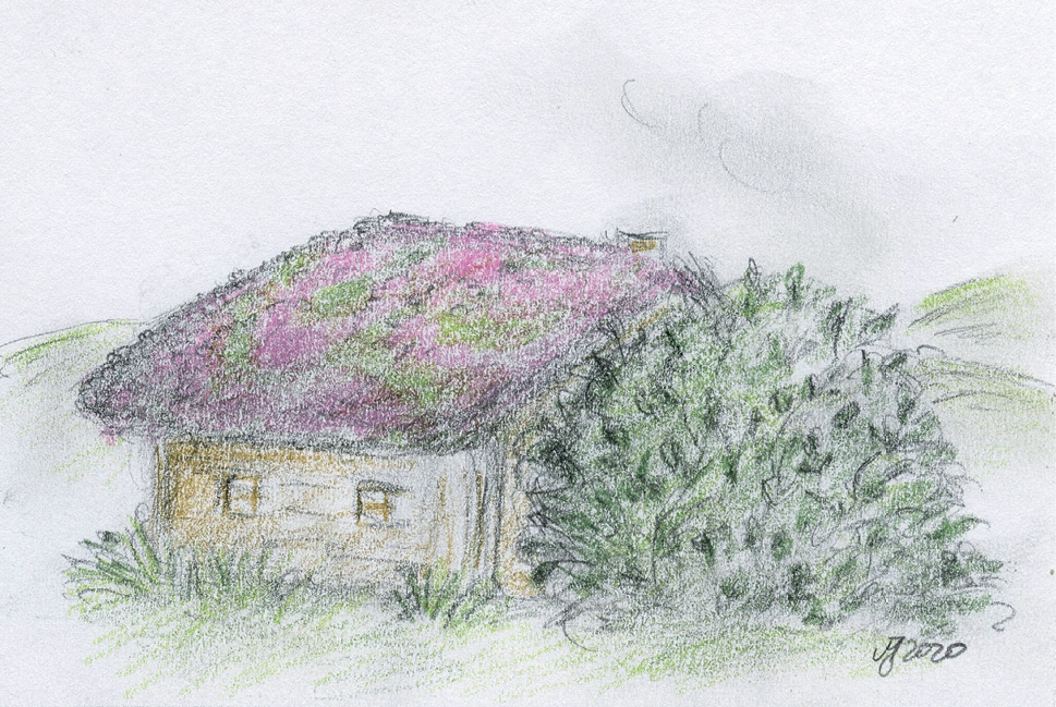 Foto. 2. O colibă cu acoperiș de gazon acoperit cu cimbru. Foto. M. Janicka.