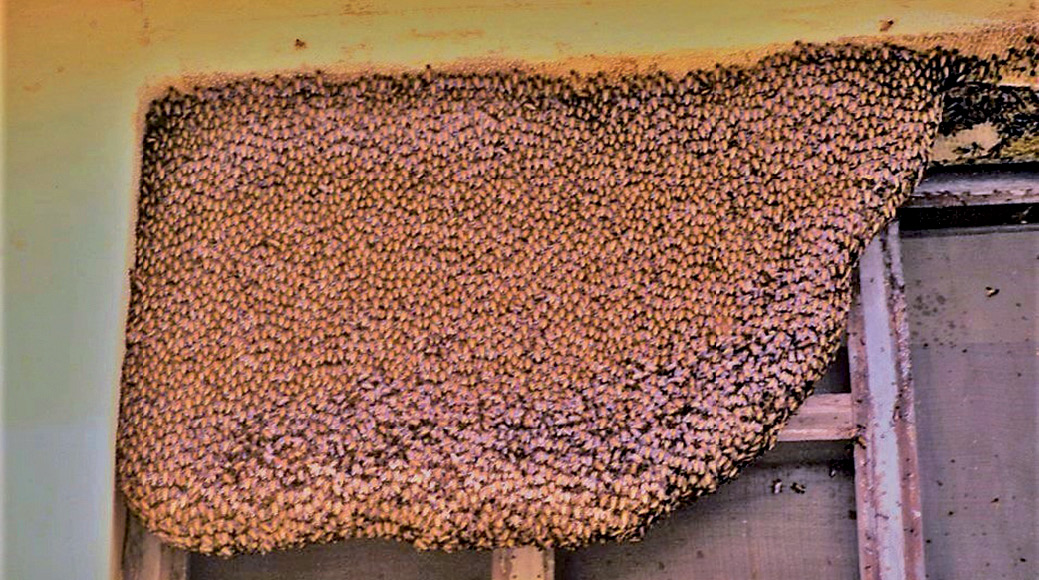 Fotografie 1. Cuibul Apis dorsata se află sub o ramură din Bangalor, India. Fotografie Prof. J. Woyke