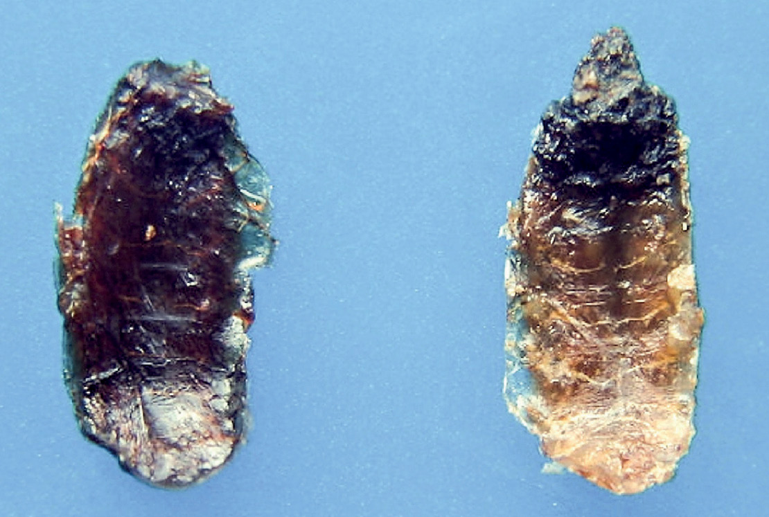 Fotografie 10. Larvele moarte, uscate, in forma de gondola.