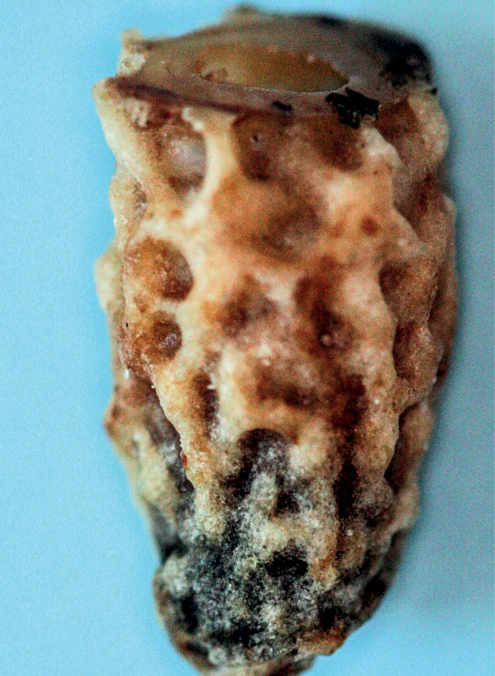 Fotografie 8. Larva transformată într-o pungă cu lichid. Fotografie G. Topolska