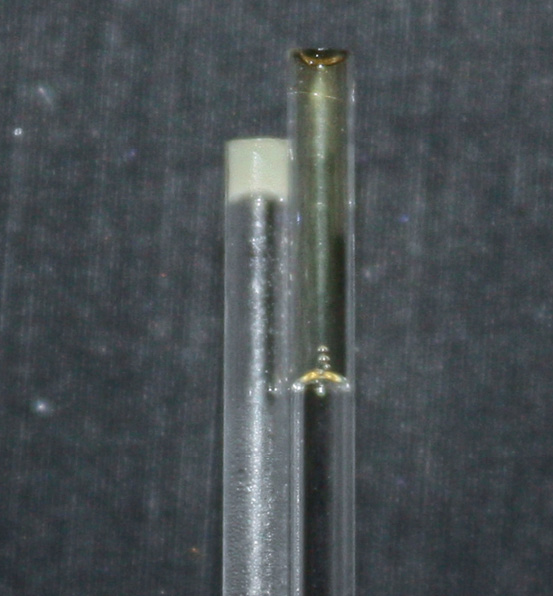 Fotografie 4. Capilare cu hemolimfă de albine. În stânga - alb lăptos, în dreapta - hemolimfă normală. Fotografie U. Imińska