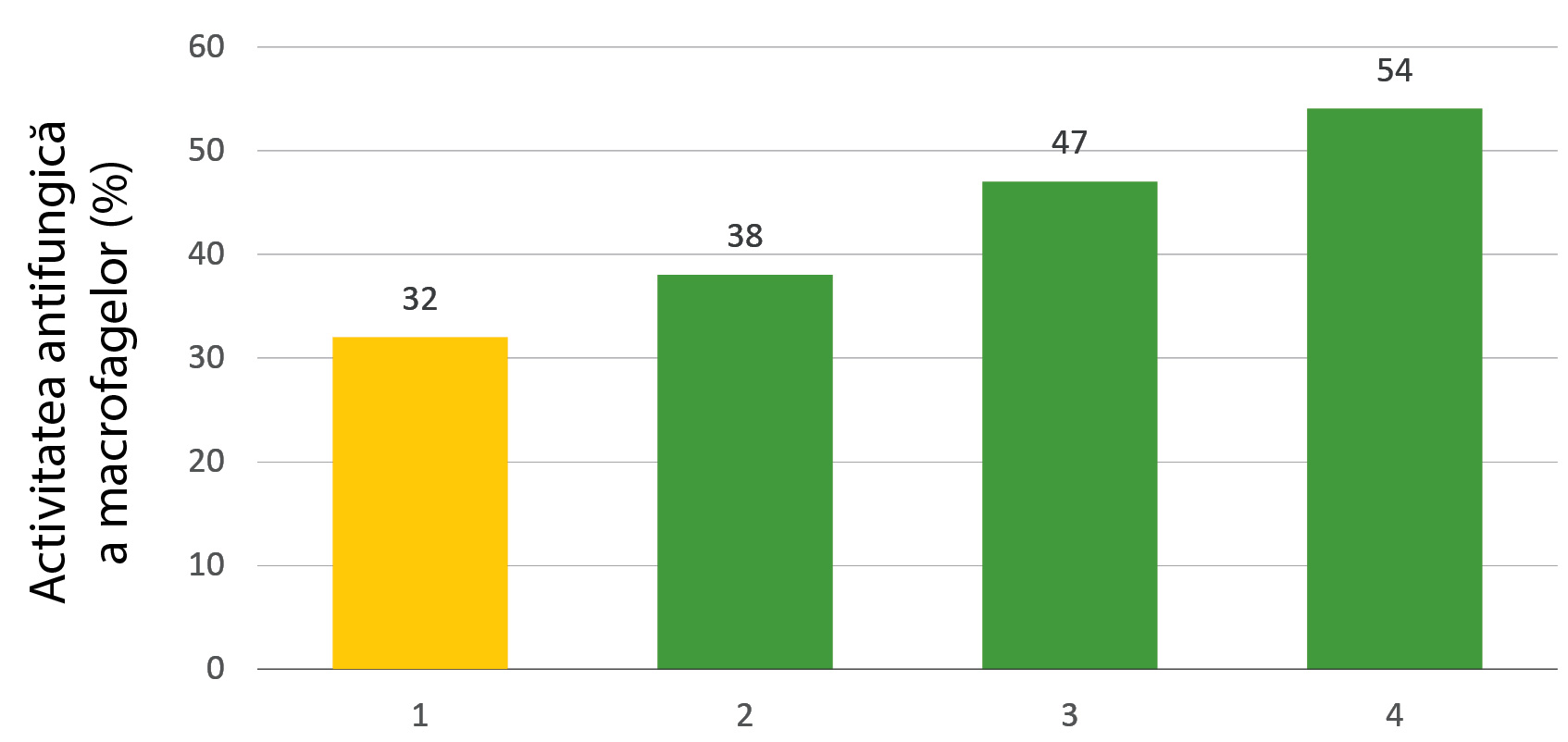 Figura 2. Efectul extractului de etanol din propolis asupra activității antifungice a macrofagelor peritoneale la șoareci (conform lui Murad și colab.)