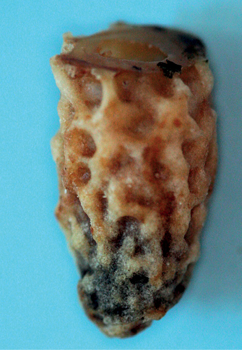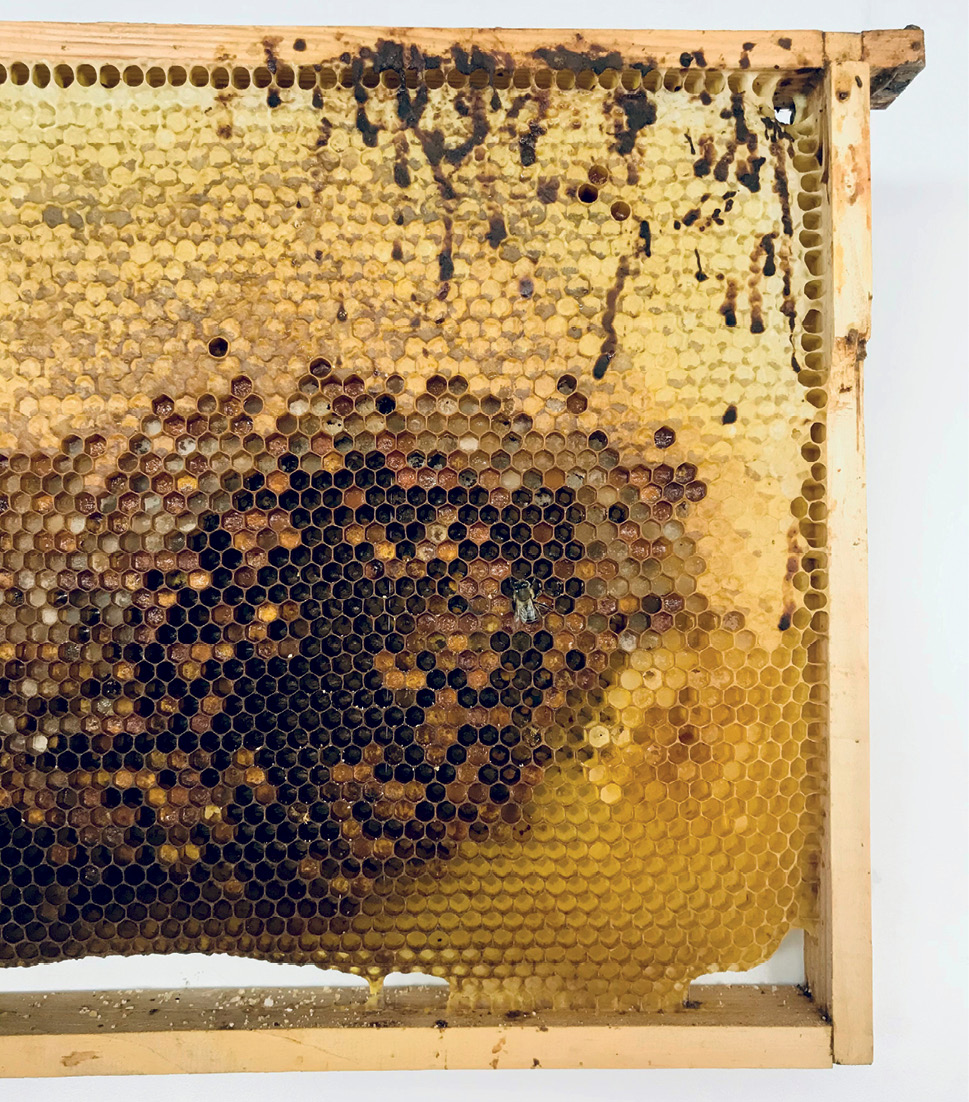 Fotografie 6. Celula de matcă bolnavă cu puiet matern, care a murit din cauza unei boli a celulelor de matcă negre. Fotografie A. Gajda