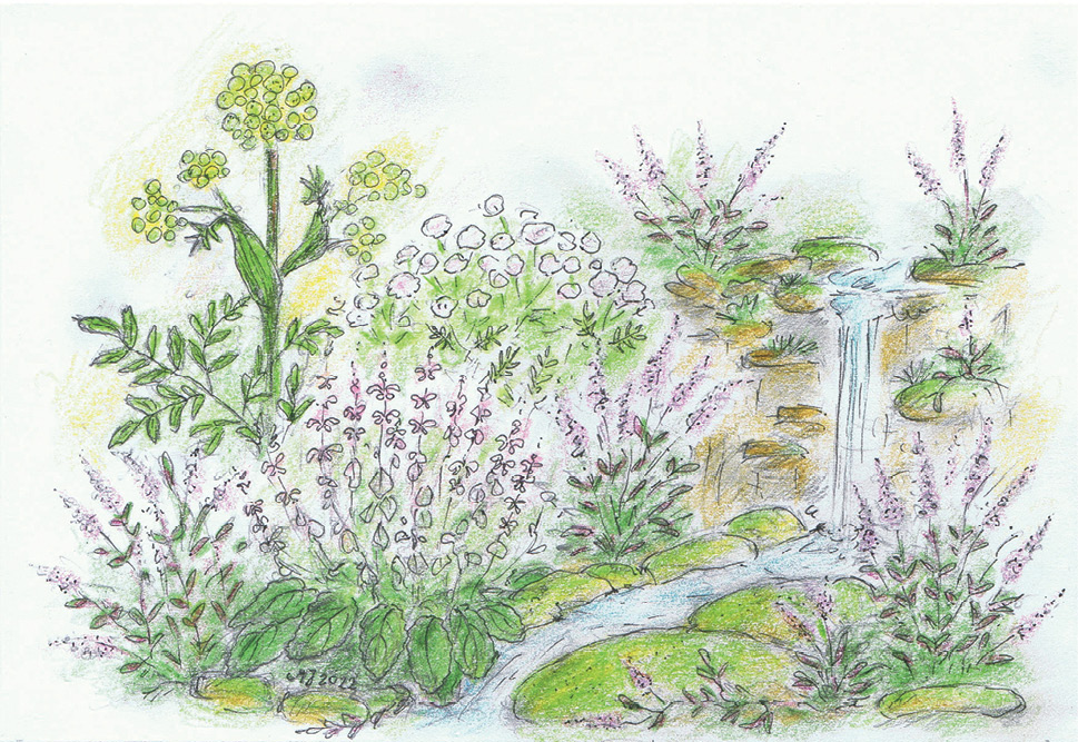 O altă posibilitate este pregătirea straturilor de sol pentru plantele care necesită mai multă apă sau, dimpotrivă, un substrat mai uscat. Un astfel de strat va fi potrivit în cazul patului de plante nr 1. Salvie cu miros de nucșoară este interesant combinată cu angelica aromată, valeriană și menta de afine. Cu toate acestea, nu-i place solul prea umed, așa că merită să-l separăm de alte plante. Plantarea într-un loc separat va facilita îngrijirea acestei plante perene de scurtă durată și vă va permite să-i subliniați frumusețea.
