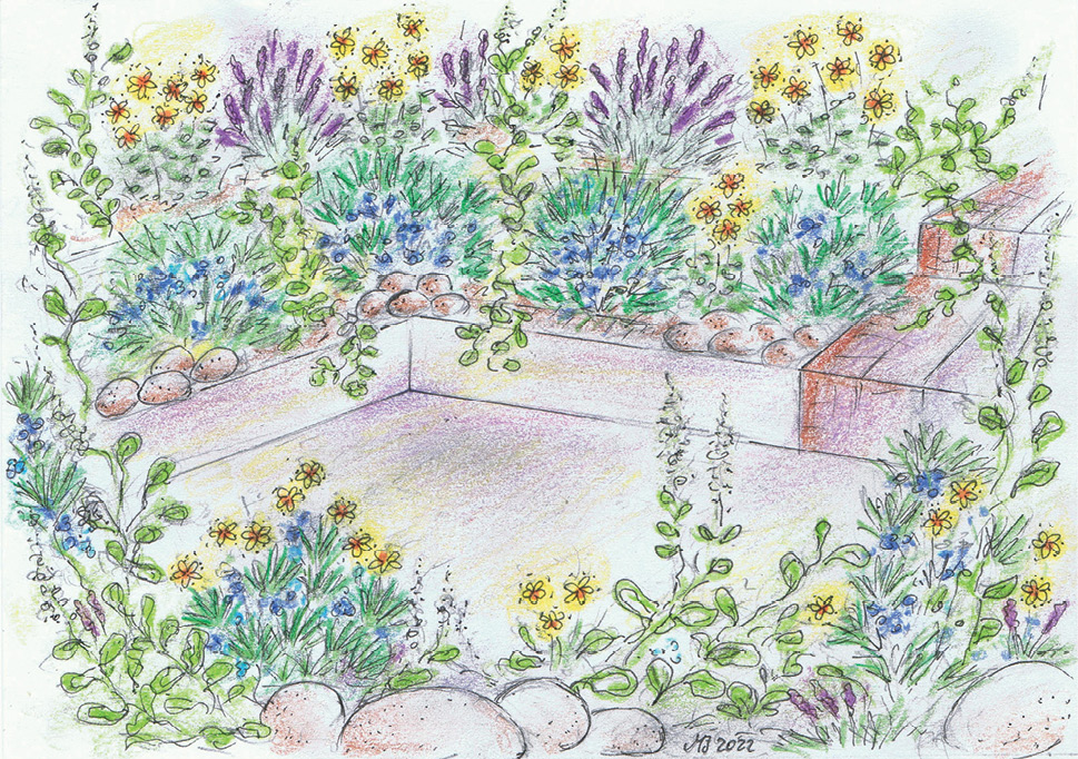 Seturile de plante destul de joase, de mai sus, se vor potrivi într-o grădină bazată pe modele geometrice: cruce, cerc, tablă de șah, pătrate uniform distanțate. Plantele arbustive precum cimbru, rozmarin și cimbru pot forma margini, iar plantele mai delicate și de scurtă durată pot umple paturile. Dafinul și speciile înalte din familia țelinei se vor prezenta frumos ca dominante ale parcelelor individuale.