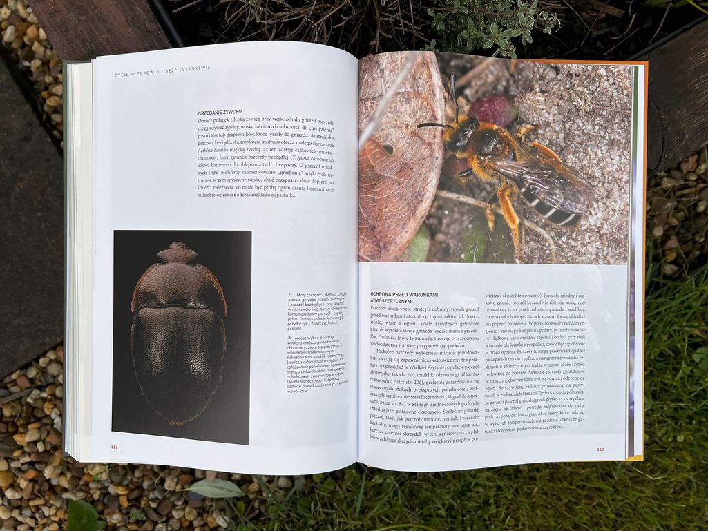 Ciekawe są także informacje o tym, czy któraś z pszczół wyrusza na poszukiwania pożytku w nocy i jak wygląda produkcja samców i samic u pszczół samotnych. Autorzy opisali także wygląd i zwyczaje poszczególnych gatunków pszczół, a także ich powiązania ze światem ludzkim. Przekrój tematów jest naprawdę imponujący i choć sposób wymienienia tej tematyki przeze mnie powyżej może sprawiać wrażenie chaosu, to układ książki jest przemyślany, a informacje są podane w odpowiednich miejscach, doskonale zilustrowane fotografiami i rysunkami.
