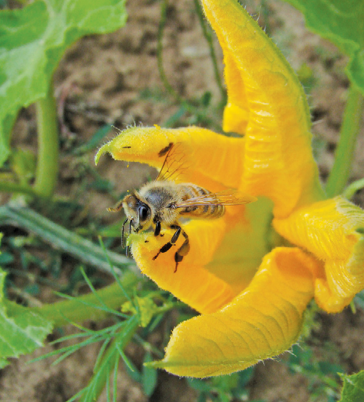 Kwiaty dyni przyciągają pszczoły kolorem i wielkością korony (która stanowi doskonałe lądowisko dla owadów) oraz produkcją dużych ilości nektaru (gatunek zaliczany jest do najbardziej nektarodajnych roślin warzywnych), pozwalających wypełnić wole kilku zbieraczkom. Nektarowanie rozpoczyna się po otwarciu kwiatów, co odbywa się wcześnie rano (5:50-6:00), a kończy przed zamknięciem kwiatów około 14:00. Kwiaty żyją krótko – 7-10 h. Najintensywniejszy oblot pszczół obserwuje się między 8:00 a 12:30. Kwiaty żeńskie wydzielają znacznie więcej nektaru (~103,7 mg) w porównaniu z kwiatami męskimi (~52 mg). Nektar zawiera 25-35% cukrów, wśród których dominuje sacharoza (~85%). Jeden kwiat żeński wydziela średnio 25,4-39,3 mg cukrów, jeden kwiat męski 13,4-18,3 mg. Wydajność miodowa w warunkach Polski wynosi 30-50 kg/ha, w cieplejszych krajach może sięgać do 100 kg/ha. W niektórych rejonach świata (zwłaszcza tam, gdzie są plantacje rośliny) można uzyskać miód odmianowy. Cechuje się on złocistożółtym lub brązowożółtym kolorem i słabo wyczuwalnym posmakiem oleju z nasion rośliny. Określany jest jako smaczny, wolno krystalizuje, a konsystencja krupca jest miękka. W warunkach Polski robotnice bardzo chętnie zbierają słodką wydzielinę z kwiatów dyni, natomiast pyłkiem są średnio zainteresowane z powodu dużego rozmiaru ziaren i trudności z formowaniem z nich obnóży. Niemniej np. w Australii i na Węgrzech dosyć często obserwuje się zbiór pyłku przez pszczoły, które formują żółte obnóża. Określa się, że ilość tego pożytku jest średnia i jest on dobrej jakości. Dynia najlepiej udaje się na żyznych, próchnicznych i wilgotnych glebach z dostateczną ilością wapnia. Preferuje stanowiska słoneczne. Rozmnaża się z nasion wysiewanych po 15 V.