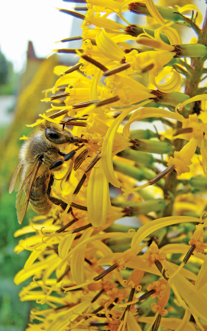 Pszczoły chętnie oblatują kwiaty języczki, zbierając nektar i pyłek. Średnia masa pyłku produkowana przez jeden kwiat rurkowaty wynosi 0,22 mg. Wydajność pyłkową z 1 ha oszacowano na 15 kg. Z pyłku robotnice formują żółtopomarańczowe obnóża. Brak jest danych dotyczących wydajności miodowej.