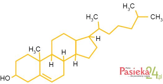 Fitosterole przenikają do wosku z pyłku pszczelego wchodzącego w skład pierzgi (pochodne cholesterolu (Ilustr. 13) i propolisu (lanosterol). Wymienione fitosterole po wchłonięciu przez skórę uzupełniają poziom lipidów w substancji międzykomórkowej oraz błonach komórkowych, a także regulują przezskórny transport wody [7].