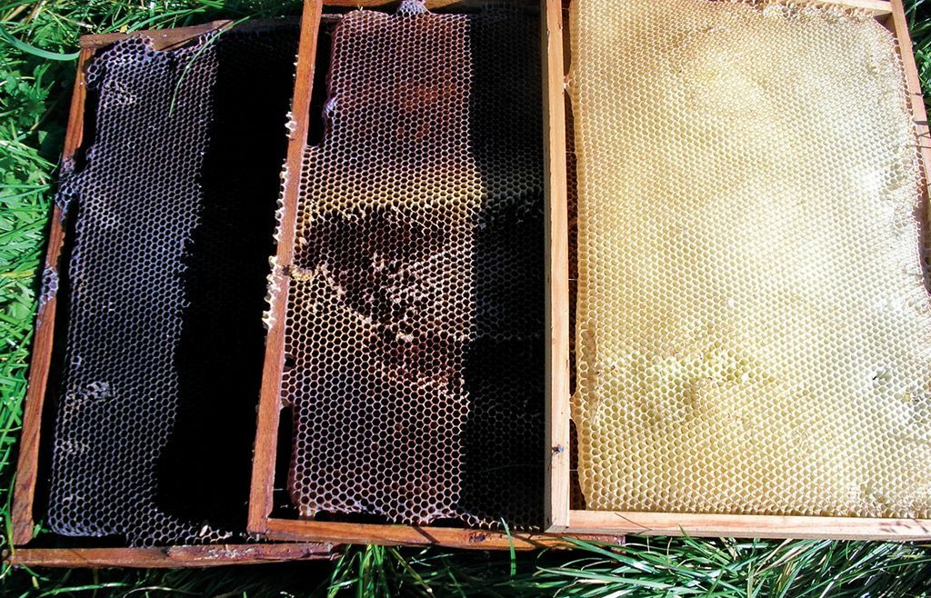 W celu polepszenia jakości wosku ciemnego wytapianego z plastrów wielokrotnie wykorzystywanych przez pszczoły do wychowywania nowych pokoleń,, poddaje się procesowi wybielania.