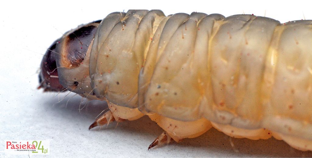 Zasklep komórek z czerwiem pszczelim jest płaski, natomiast z czerwiem trutowym lekko wypukły4(Fot. 7 i 8) [2].