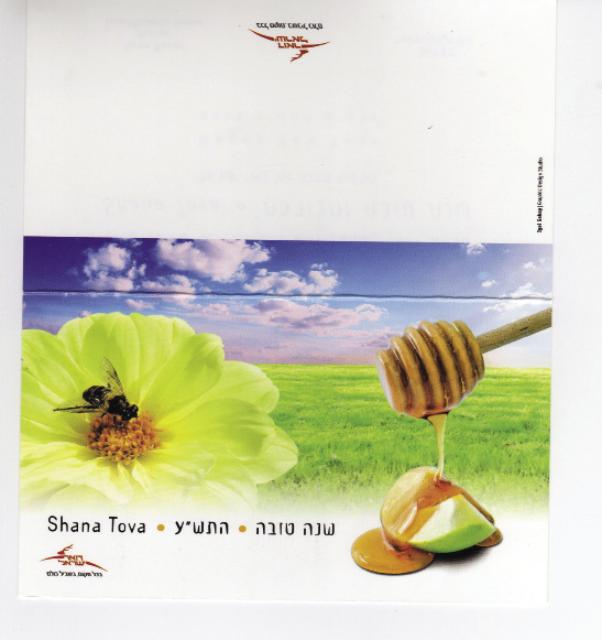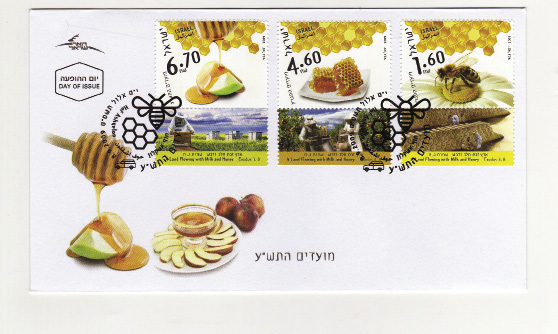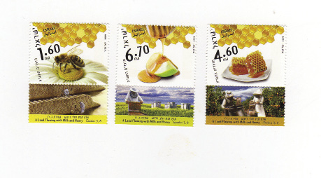 Miód w judaizmie symbolizuje nadzieję i błogosławieństwo. Podczas żydowskiego Nowego Roku jest zwyczaj podawania plasterków jabłek z miodem, co ma oznaczać słodki i szczęśliwy rok. Powyższy motyw zdobi jeden ze wspomnianych wyżej znaczków i kartkę noworoczną.