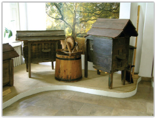 Klasycznym przykładem wykorzystania materiałów odpadowych do wykonania rzeczy niezbędnych są podkurzacze. Jeden z nich dodatkowo ucieleśnia postulat „przekuwania mieczy na lemiesze” pyszniąc się okazałym korpusem wykonanym z obudowy maski przeciwgazowej. W uzupełnieniu pozostaje jeszcze drobny pszczelarski sprzęt: ramki, podkarmiaczki, rojnice... i filigranowa drewniana klateczka do poddawania matek z nieocenionej dla muzeum pasieki wspominanego już tutaj Antoniego Górniaka.