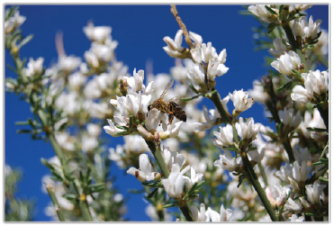Pszczoła odwiedzająca kwiaty krzewu
