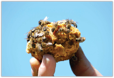 - Feedbee zagniecione z lukrem i substytutami pyłów, których używałem wcześniej. Do wszystkich trzech rodzajów ciasta stosowałem te same proporcje (1:1) przy dodawaniu syropu z cukru do produktu podstawowego. Rodziny kontrolne dostawały te same cukrowe ciasta z substytutem pyłków kwiatowych, przygotowywane z miodu, których z powodzeniem używałem przez lata.