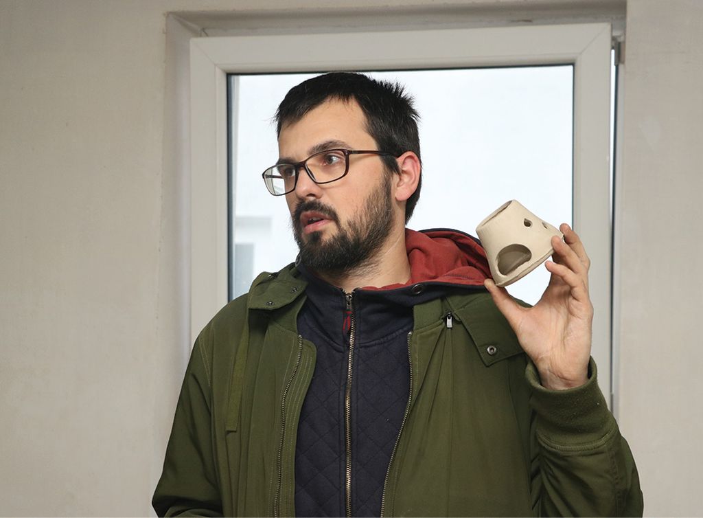Fot. 5. Bartłomiej Jaros informował o procesach produkcji ceramiki. Fot. Michał Piątek