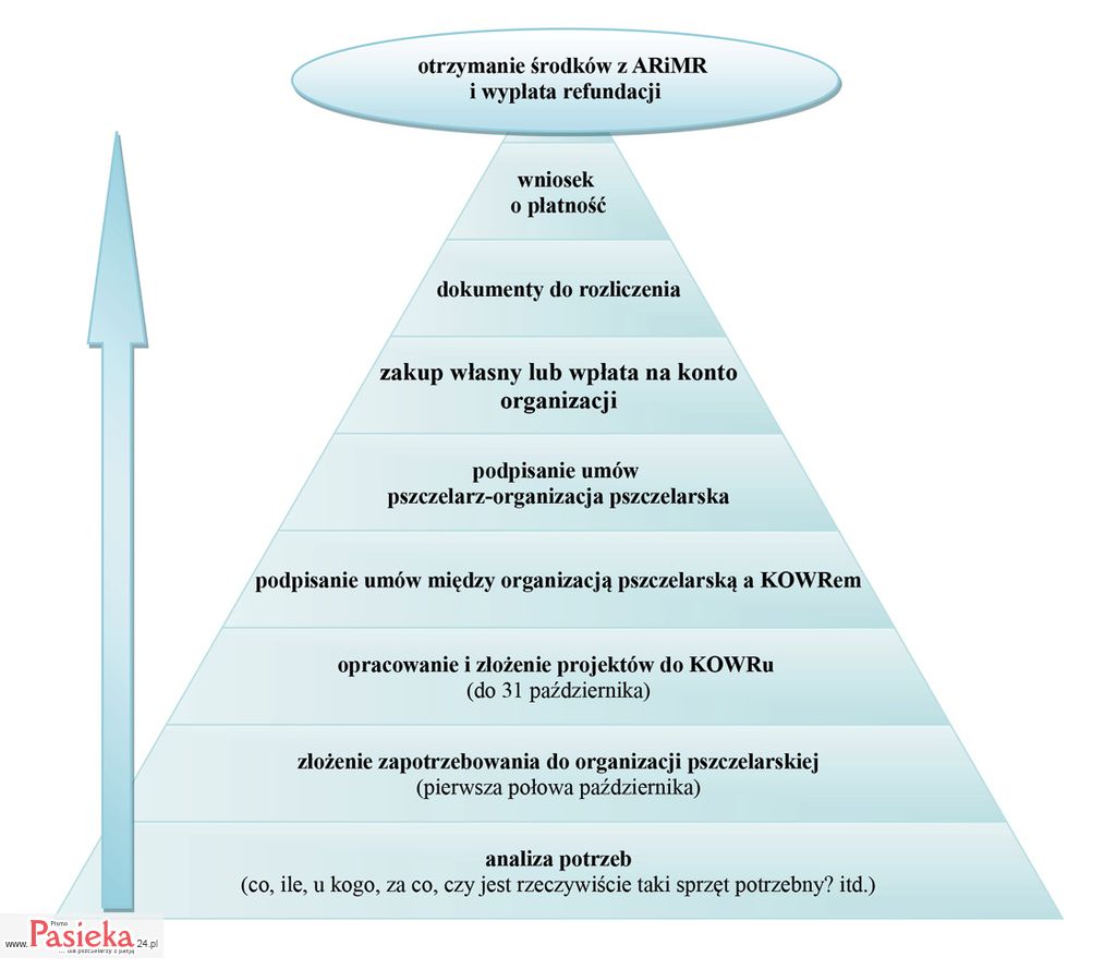 Refundacja jest wypłacana po otrzymaniu środków z ARiMR. W projektach zakupu sprzętu i urządzeń do gospodarki wędrownej określone są terminy, w jakich należy wypłacić pszczelarzowi refundacje. Jest to 45 dni od momentu otrzymania środków.