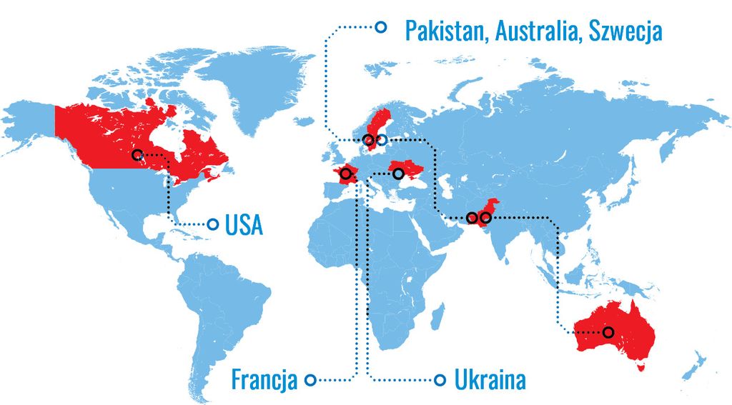 Pakistan, Australia, Szwecja