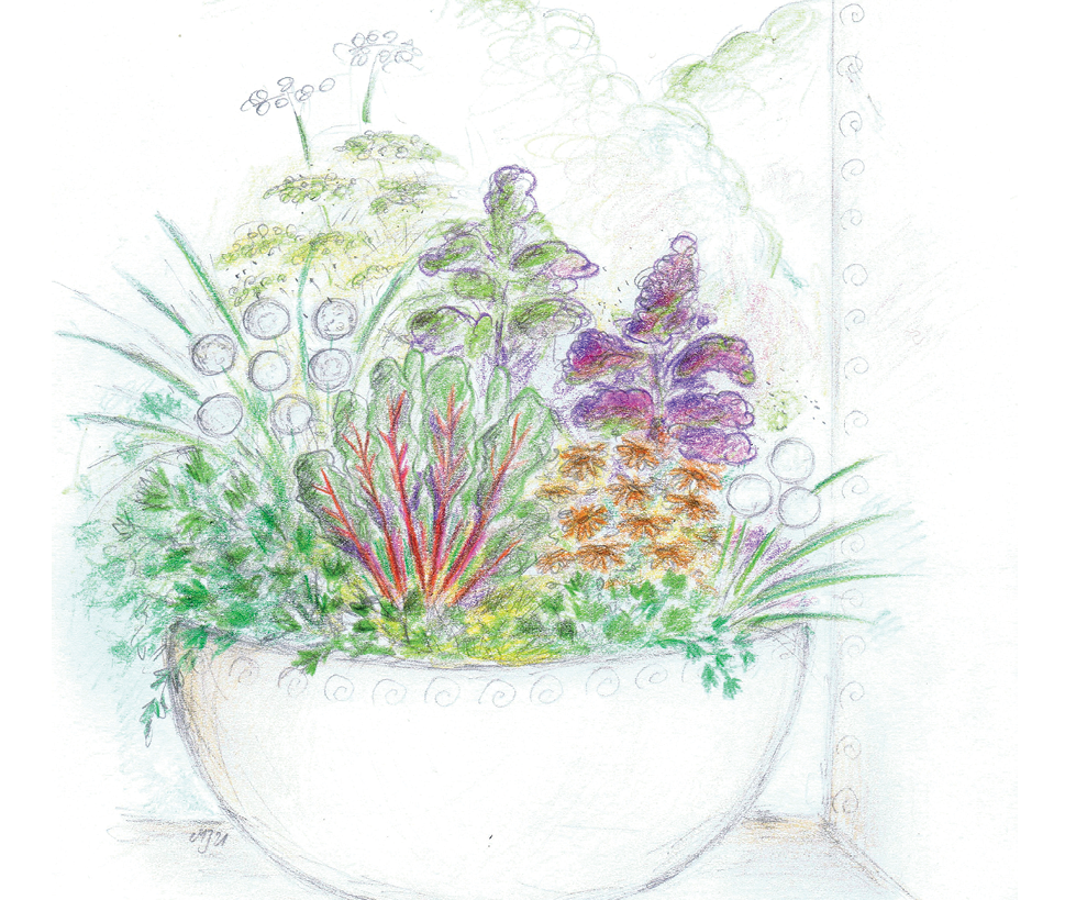 Kompozycja warzywna w donicy nr 1. Rys. Maria Janicka