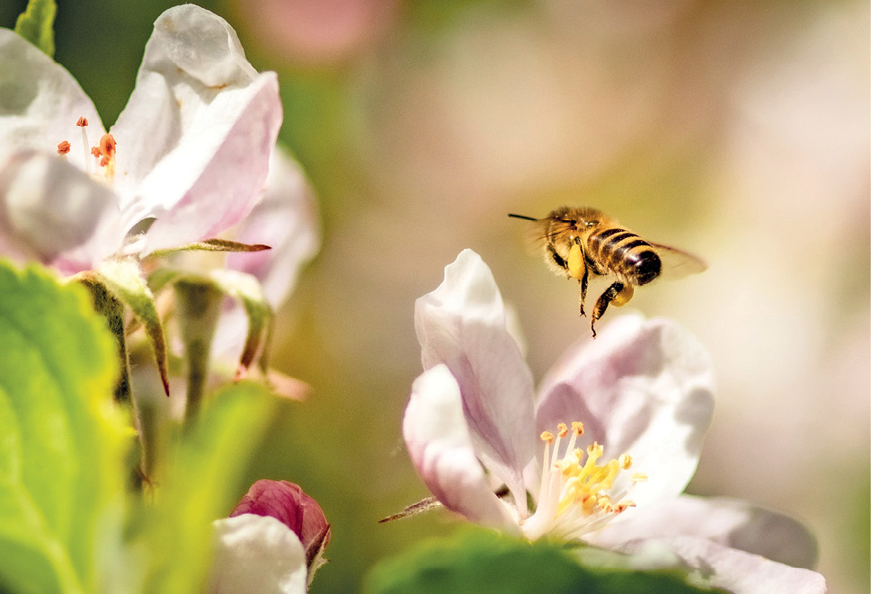 W przenoszeniu pyłku między kwiatami jabłoni największą rolę odgrywają pszczoły, zwłaszcza pszczoły miodne i murarka ogrodowa, będące owadami o różnej biologii, co ma wpływ na porę oblotu.