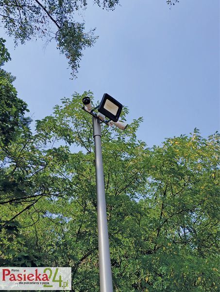 Na rynku dostępne są kamery różnych producentów, mają jednak kilka cech wspólnych: każda kamera odpowiednio skonfigurowana pokaże nam obraz z chronionego terenu, nagra zdarzenie na dysku twardym lub karcie pamięci. Prawie każda kamera może zadziałać jako czujnik ruchu, informujący nas o pojawieniu się obiektu w jej polu widzenia lub wyzwolić tym samym działanie odstraszające np. odtworzenie komunikatu z głośnika o przykładowej treści: „Proszę opuścić teren, właściciel został poinformowany o wtargnięciu”. Ważną cechą kamer jest możliwość podglądu pracujących pszczół w czasie rzeczywistym, co pozwala pszczelarzom zaobserwować niepożądane zjawiska, na przykład rójkę lub rabunek pomiędzy rodzinami i w porę zareagować. Przy doborze kamer należy zadać sobie konkretne pytania, m.in.: czy jest dostęp do stałego zasilania, jeśli nie, to czy stać nas na zasilanie bateryjne z ewentualnym panelem słonecznym, czy jest dostępna sieć internetowa lub zasięg Wi-Fi. W przypadku braku dostępu do sieci, możemy zastosować urządzenia do transmisji sygnału lub kamerę z miejscem na kartę SIM. Należy jednak mieć na uwadze, że urządzenia z bezprzewodową transmisją danych i własnym zasilaniem obarczone są dużą zawodnością, brakiem płynności pracy oraz niestabilnością systemu. Wiążą się również z bardzo wysokimi kosztami, by uzyskać zadowalający efekt. Mimo tych wad, według mnie kamery w pełnej instalacji kablowej są najbardziej funkcjonalnym sposobem zabezpieczenia naszych pasiek. Obecne rozwiązania monitoringu wyposażone w analizę obrazu, rozpoznawanie obiektów lub weryfikację tablic rejestracyjnych czy nawet rozpoznawanie twarzy to już poziom ochrony i nadzoru na bardzo wysokim poziomie. Czy to przerost formy nad treścią? Zastanówmy się, ile jest wart dobytek pszczelarza, który jest hodowcą matek, a każda z jego rodzin jest warta kilka tysięcy zł? Nie licząc nakładu finansowego, utrata efektów pracy, pasji swojego życia lub jedynego źródła dochodu, może być o wiele trudniejszym doświadczeniem.