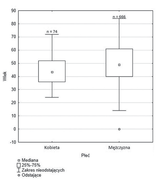 Wykres 1. Wiek a płeć pszczelarzy biorących udział w badaniu ankietowym.