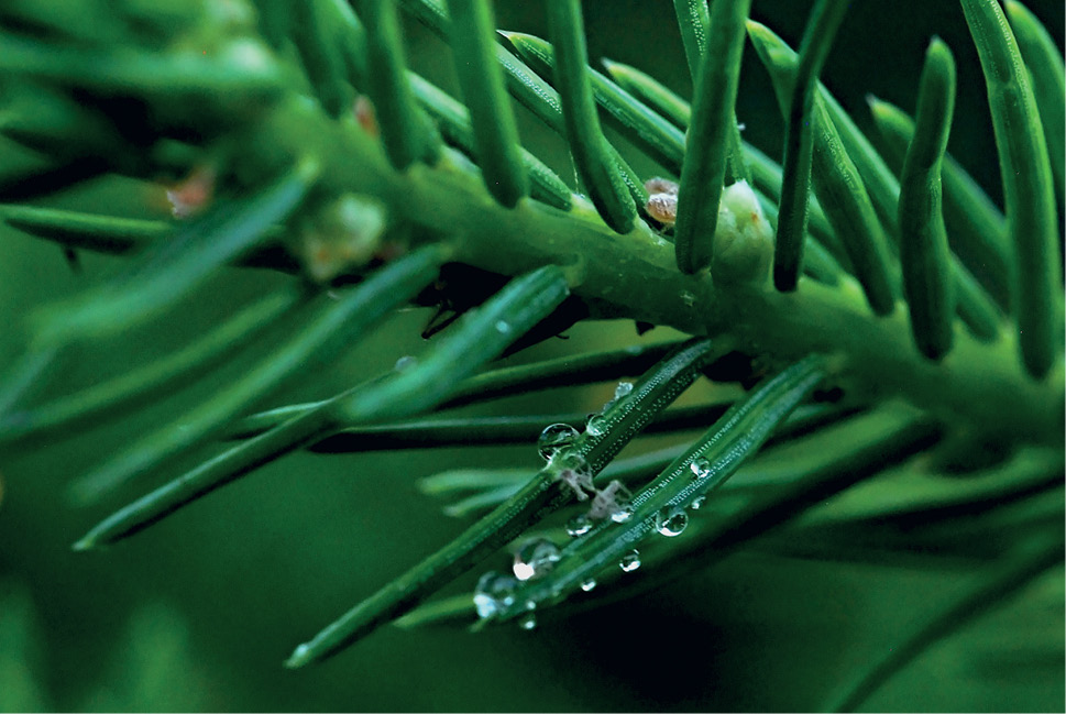 Fot. 5. Spadź jest słodką, lepką cieczą, produkowaną przez drobne owady z rzędu pluskwiaków równoskrzydłych, podrząd pluskwiaków i wydalaną jako uboczne produkty przemiany materii. Fot. Milan Motyka