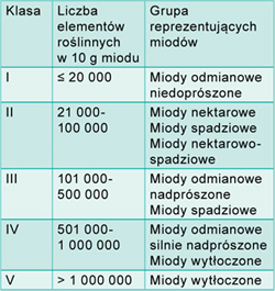 Liczba ziarn pyłku w 1 g miodu wynosi od kilkudziesięciu do kilkunastu milionów.