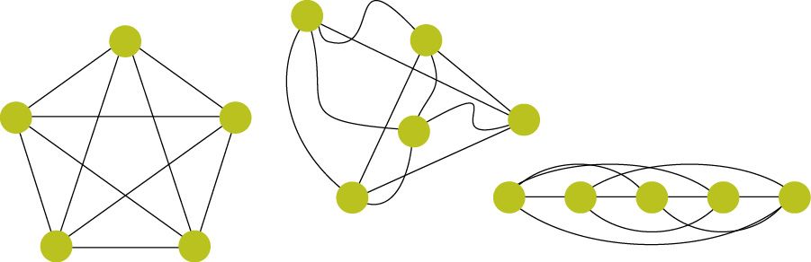 Ilustr. 4. Rysunek grafu to tylko jedna z jego wielu reprezentacji graficznych. Każdy graf można przedstawić na wiele sposobów.