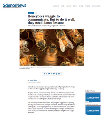 Taniec pszczół, odkryty przez znakomitego etologa Karla von Frischa, ma olbrzymie znaczenie dla pszczół z rodzaju Apis. Jest on kodem, który pozwala pszczołom z tego samego gniazda w sposób dość precyzyjny przekazywać wiadomości o dostępności pożywienia, jego odległości od gniazda oraz o kierunku lotu, w jakim należy podążać, aby znaleźć pokarm. Taniec może wydawać się prosty, ale w rzeczywistości dokładne wykonywanie ruchów na powierzchni plastra, zwłaszcza nieregularnej dzikiej zabudowy, jest wyzwaniem. Tancerki otoczone setkami przepychających się pszczół, szybko poruszając odwłokiem, muszą utrzymać właściwy kąt względem położenia Słońca. Łatwo się potknąć i zmienić kierunek na nieprawidłowy.