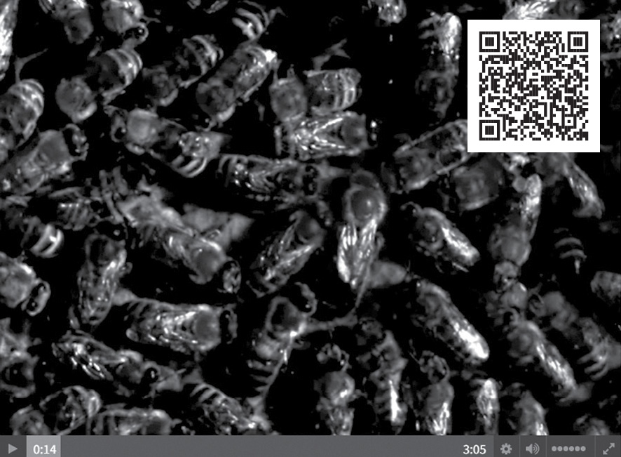 AT: Ul obserwacyjny znajduje się w pomieszczeniu, ale pszczoły wychodzą z gniazda przez otwór w oknie i wykonują normalne loty po pokarm. Rodzina pszczela funkcjonuje na sześciu ramkach, z czego dwie są za szkłem, które można obserwować z dwóch stron. Przez większość czasu te ramki są osłonięte izolacją. Odkrywamy je jedynie na czas obserwacji i doświetlamy, ponieważ szybka kamera wymaga bardzo dużo światła. Pozostałe ramki są niewidoczne nad tymi dwoma. Ważne jest, aby rodzina obserwacyjna była odpowiednio liczna. W rodzinie z jedną lub dwoma ramkami liczba robotnic mogłaby być zbyt mała. Rodzina pszczela funkcjonuje cały sezon od wiosny do jesieni w tym ulu, który pozwala na wymianę ramek w razie potrzeby. Na zimę przenoszę pszczoły do zwykłego ula stojącego na polu z tego względu, że pomieszczenie badawcze jest ogrzewane. W takich warunkach rodzina pszczela musiałaby zużywać znacznie większe ilości pokarmu, co wpływałoby negatywnie na zimowlę pszczół. Tak jak w zwykłym pszczelarstwie dopiero zimą można jechać na wczasy (śmiech).