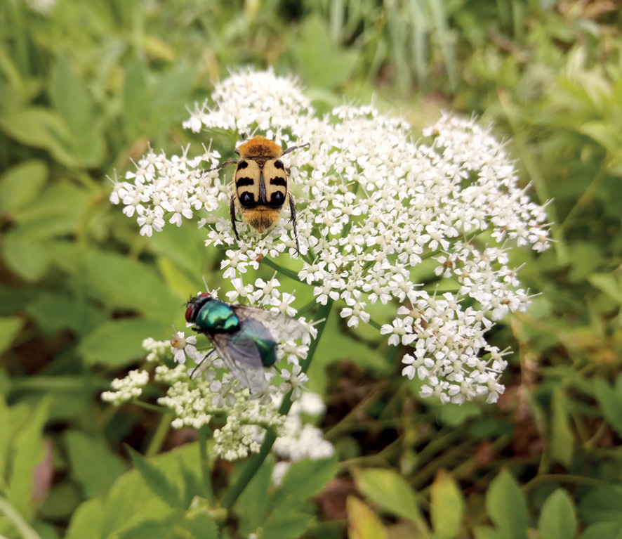 Dobór roślin: nostrzyk żółty Melilotus officinalis +, koniczyna łąkowa Trifolium pratense +, chaber łąkowy Centaurea jacea +, wyka ptasia Vicia cracca +, sadziec konopiasty Eupatorium cannabinum +, kłobuczka pospolita Torilis japonica 1, bylica pospolita Artemisia vulgaris 2.