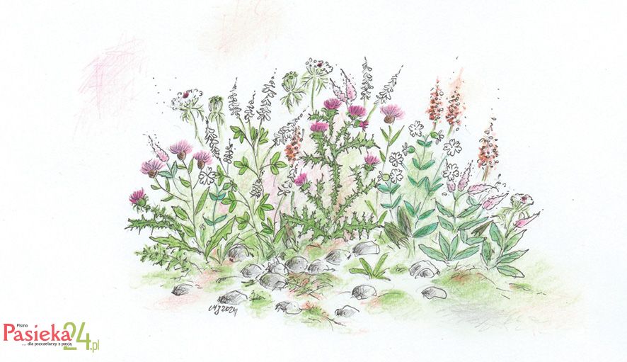 - jak wiele z tych roślin dostarcza pyłku i nektaru pszczole miodnej;
