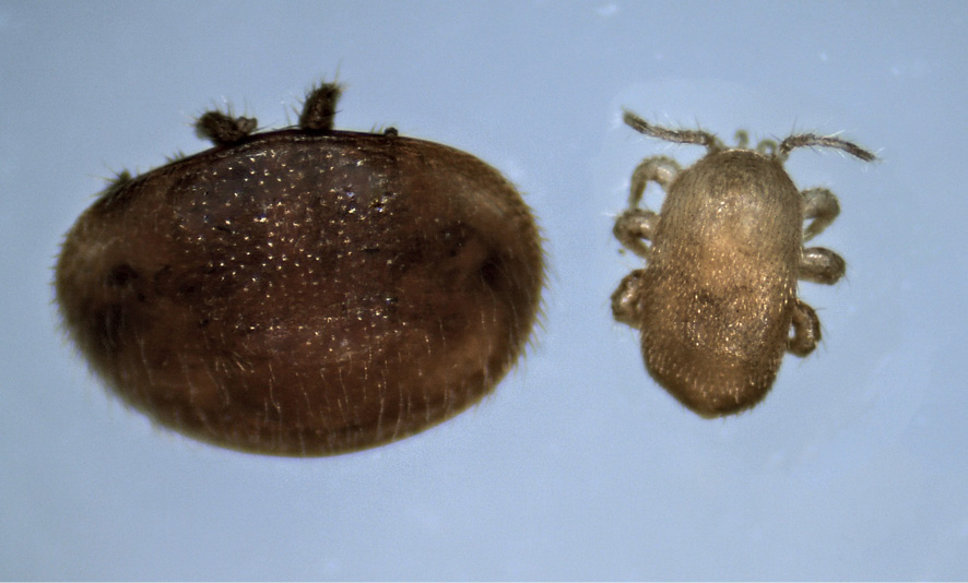 Z powodu postępujących zmian klimatu na większości terytorium Polski temperatura zimą jest już znacznie wyższa niż 15 lat temu i dlatego matki czerwią również zimą, a ponieważ Tropilaelaps do przetrwania populacji potrzebuje obecności czerwiu, w którym się namnaża i na którym żeruje, grozi nam realna inwazja tego pasożyta. Roztocze Tropilaelaps (Fot. 2) jest szkodnikiem kwarantannowym i jeszcze nie odnotowano jego występowania w Europie. Zapobieganie nadmiernemu namnażaniu się roztocza w krajach, gdzie występuje, wygląda podobnie jak przy warrozie.